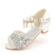 迪士尼轻奢女童凉鞋夏季儿童高跟鞋 银色单鞋女宝宝公主鞋 新款网红水晶鞋子旗舰官方专卖0369岁 闪银色 28码/鞋内长18.5cm
