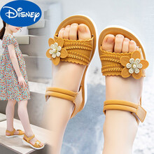 迪士尼女童凉鞋夏新时尚网红公主鞋防滑小中大儿童小学生凉拖鞋百搭软底 卡其色 (偏小一码) 34码 内长19.5厘米