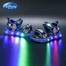 迪士尼【Disney】 带灯男童凉鞋奥特曼蜘蛛侠中大童儿童凉鞋2021新款夏季男孩沙滩鞋 蓝色奥特曼 亮灯 32码 内长19.9厘米