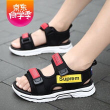 男童凉鞋2021夏季新款中大童小孩软底防滑儿童沙滩鞋小童男孩鞋子 S208黑红 32