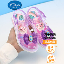 迪士尼(Disney)水晶公主塑料凉鞋小女孩女童学生防滑夏季时装蝴蝶结防水沙滩鞋软小孩子夏天穿的 紫色 内长20.5cm