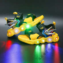 幼童凉鞋2021款时尚轻便防滑软底儿童凉鞋2021夏季新款沙滩凉鞋中大童带灯小学生男孩凉鞋子 黄色 (带灯) 35 码(内长21.4CM)