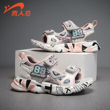 贵人鸟儿童凉鞋男女童2021新款夏季透气防滑软底童鞋中大童百搭女孩男孩沙滩凉鞋 灰粉 35