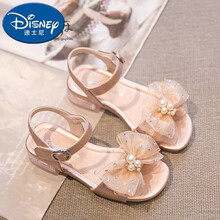 迪士尼儿童凉鞋2021夏季新款时尚中大童软底公主鞋女童鞋子高跟鞋小女孩 香槟色 36