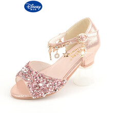 支持鴻星尔克/迪士尼线下商场同款轻奢女童凉鞋夏季儿童高跟鞋 银色单鞋女宝宝公主鞋 新款网红水晶鞋子 闪粉色 36码/鞋内长22.5cm