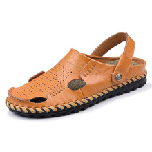 【甄选皮质丨现货直发】透气凉鞋 舒适柔软 卡登威.公牛 夏季牛皮包头沙滩鞋男士凉鞋 棕色 42