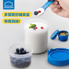 乐扣乐扣辅食盒宝宝零食盒奶粉盒便携式外出奶粉盒保鲜盒塑料米粉盒食品分装盒零食杯冰箱保鲜盒水果保鲜盒 【蓝色·带餐具】上310ml+下560ml
