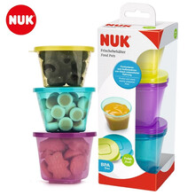 德国nuk 迷你宝宝零食盒 外出辅食盒 婴儿便携奶粉盒 方形储存冷冻保鲜盒分格带盖6个装防泼洒带刻度 3色-6个装