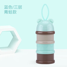 便携奶粉储存盒 婴儿独立可拆奶粉格三层零食盒 蓝色青蛙三层
