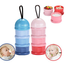 威仑帝尔婴儿大容量外出奶粉盒便携奶粉格宝宝奶粉罐分装储存三层辅食盒零食盒 粉红色