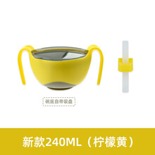 吉田久森宝宝辅食碗三合一吸管碗婴幼儿吸盘碗喝汤神器儿童训练餐具 新款240ml柠檬黄 硅胶吸管 零食盖 防尘盖