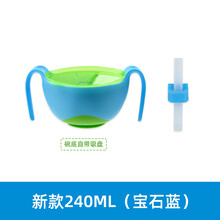 辅食碗三合一吸管碗婴幼儿吸盘碗喝汤神器儿童训练餐具 新款240ml宝石蓝 硅胶吸管