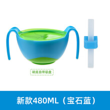 辅食碗三合一吸管碗婴幼儿吸盘碗喝汤神器儿童训练餐具 新款480ml宝石蓝 硅胶吸管