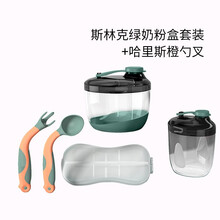 魔法乐乐法国小号奶粉分装盒迷你小型辅食多功能便携外出婴幼儿宝宝密封防潮分格米粉储存罐儿童零食盒大容量 斯林克绿【大小装】+哈里斯橙勺叉...