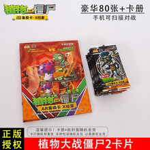 植物大战僵尸2卡片AR对战全套闪可收集册对战桌游闪金全套装AR对战竞技游戏收藏册儿童玩具男孩女孩礼物 植物豪华版(10包)80张+卡册