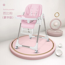 宝宝餐椅多功能简单款吃饭餐桌便携式家用婴儿桌椅座椅儿童bb凳子 芭比粉豪华版 (带轮靠背可调) 带吃饭围兜