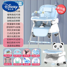 迪士尼(Disney)儿童餐椅宝宝吃饭桌小孩家用多功能可升降可折叠座椅婴儿学坐椅凳 卡通蓝色 【纪念版】双餐盘+溜溜车