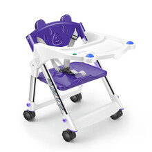 宝宝餐椅吃饭可折叠便携式婴儿椅子多功能餐桌椅座椅儿童矮脚饭桌 紫顶配带万向轮+音乐灯光+坐垫 带安全带+绑带