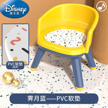 迪士尼同款旗舰家用婴幼儿餐椅塑料儿童靠背坐椅宝宝叫叫椅吃饭小餐椅小凳子加厚 霁月蓝【发声PVC垫款】