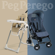 意大利原装进口pegperego宝宝餐椅多功能+婴儿推车轻便折叠 套装 奶酪色+牛仔蓝