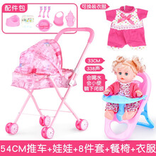 儿童玩具女孩过家家推车带娃娃洋娃娃宝宝婴儿小手推车女童公主娃娃 54CM推车+小花娃娃+餐椅+衣服