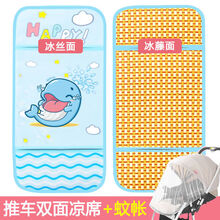 婴儿凉席冰丝藤通用宝宝推车凉席垫夏季透气儿童餐椅安全座椅坐垫 双面凉席蓝海豚+蚊帐