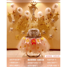 适用于一周岁生日布置气球装饰男孩宝宝场景女孩儿童tutu纱裙餐椅背景墙 桔色 满天星款送生日帽