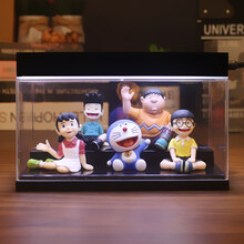 动漫周边小叮当哆啦A梦手办公仔机器猫模型玩偶 5款坐姿家族哆啦A梦 玩偶+展示盒+灯饰