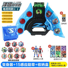 泽塔升华器奥特曼变身器玩具卡片感应勋章收纳盒全套软胶人偶特利迦贝利亚黄昏礼盒装迪迦欧布泰迦男孩礼物 大号蓝变身器+15感应勋章+收纳盒+2人...