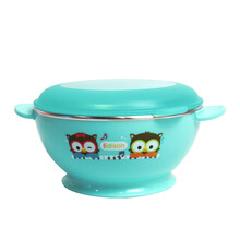 Edison 韩国进口 爱迪生儿童不锈钢饭碗 宝宝辅食餐具 儿童餐具 婴幼儿双耳防滑碗带盖(蓝色240ML)