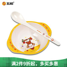 五和儿童饭碗双耳宝宝辅食碗家用耐摔卡通卡通可爱婴儿小猪佩奇餐具 萌猴双耳碗勺套装