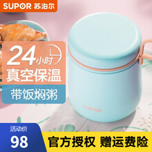 苏泊尔(SUPOR)焖烧杯316L不锈钢真空焖烧罐保温饭盒宝宝辅食便携饭盒 海盐蓝500ml