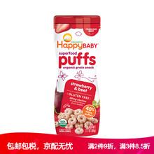 国际 禧贝Happy Baby 美国进口婴幼儿宝宝辅食零食有机彩虹泡芙 富含胆碱 60g/罐6个月以上 草莓甜菜味