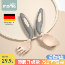 全能妈妈Supermama 新生儿辅食勺 婴儿宝宝勺子 米糊勺学吃饭训练练习勺筷叉 弯头勺子 茱萸粉