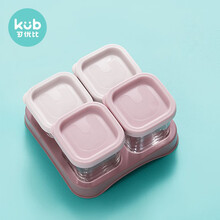 可优比(KUB)宝宝辅食盒冷冻盒婴儿储存盒便携外出密封保鲜盒玻璃辅食碗 慕斯粉4只装