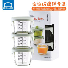 乐扣乐扣婴儿辅食盒玻璃盒辅食冷冻盒密封储存盒宝宝零食盒便携外出米粉盒食物分装盒 豆绿色方形【230ml*3件套·带礼盒】