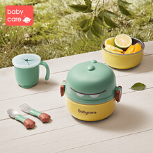 babycare宝宝餐具辅食碗儿童碗防摔防烫婴儿外出辅食碗叉勺子套装 温特绿