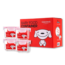 Glasslockbaby婴儿辅食盒 耐热玻璃密封保鲜储存盒冷冻 新生儿宝宝辅食碗 儿童餐具套装 方形210ml*4