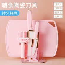 拜格 陶瓷刀 宝宝辅食刀具套装 家用菜刀菜板辅食工具组合 镀金陶瓷刀具6件套