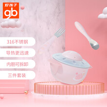 gb好孩子 儿童餐具辅食碗 宝宝 婴儿碗 吸盘碗 注水保温碗+勺+叉 不锈钢餐具3件套装 飞碟系列 粉白