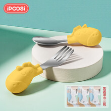 超市 ipoosi 儿童餐具宝宝勺子训练婴儿学吃饭辅食勺不锈钢短柄勺硅胶舔舔勺便携训练叉勺套装 黄色斑马