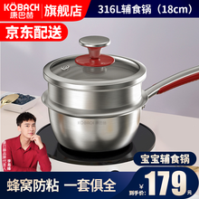康巴赫宝宝辅食锅奶锅带蒸屉316L不锈钢小汤锅蒸煮锅热牛奶锅煮面泡面锅电磁炉燃气灶通用 18cm