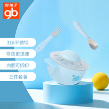 gb好孩子 儿童餐具辅食碗 宝宝 婴儿碗 吸盘碗 PP材质 注水保温碗+勺+叉 不锈钢餐具3件套装 飞碟系列 蓝白