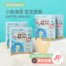 日本greennose绿鼻子婴幼儿童无添加盐糖米饼干磨牙棒小饼干宝宝非油炸辅食零食1岁 小鱼米饼四盒装