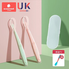 科巢(scoornest)儿童辅食勺套装 硅胶勺 婴儿餐具 儿童勺子 宝宝勺子 硅胶软勺 樱粉/雾绿【两只装】+感温勺+收纳盒