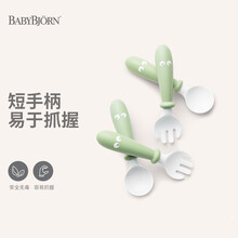 超市 BabyBjorn宝宝叉子勺子儿童餐具叉勺套装男女便携辅食汤匙4件装粉绿色