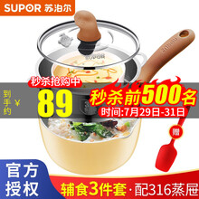 苏泊尔(SUPOR)宝宝辅食锅奶锅不粘锅婴儿食品级316蒸格小锅平底煎锅汤锅电磁炉燃气通用煮面 16CM黄色FP01【奶锅+316蒸屉+铲】