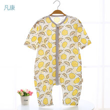 宝宝薄款睡袋精梳夏季短袖双向拉链式防踢被婴幼儿童分腿睡衣 黄色适合室温【26~32°C】 纯棉中袖 80码(尺码偏大,请根据身高选择