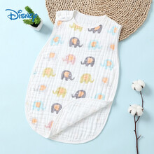 【好睡眠】迪士尼品牌小孩好睡觉的睡袋宝宝睡袋婴儿夏季薄款纱布无袖背心式新生儿空调房儿童防踢被 四层-超柔高密棉纱 【大象】 s码衣长60cm(2岁...