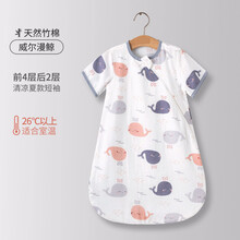 婴儿纱布睡袋春秋夏薄款新生儿童防踢被四季通用宝宝防惊跳 夏季短袖款 【前4后2层 建议室温26°以上】-鲸 70码/S 【适合身高55-70cm】 建